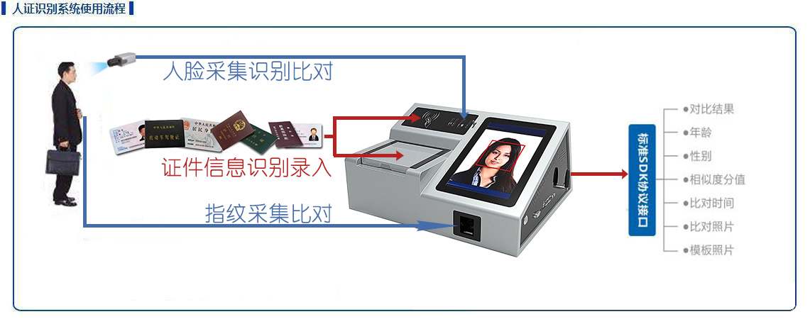 比對證件:身份證、駕照、護照、港澳通行證、臺胞證、行駛證等(可以識別電子護照,留有擴展口)