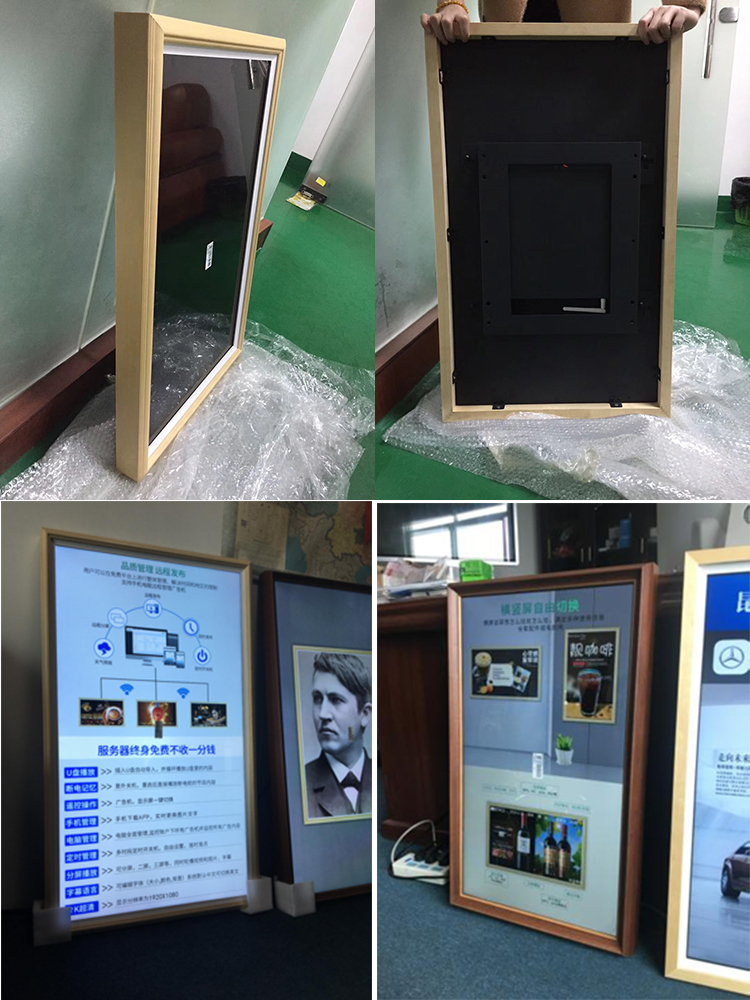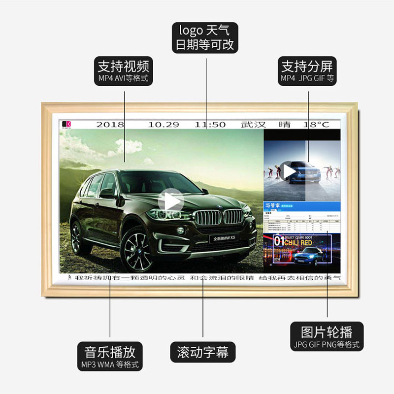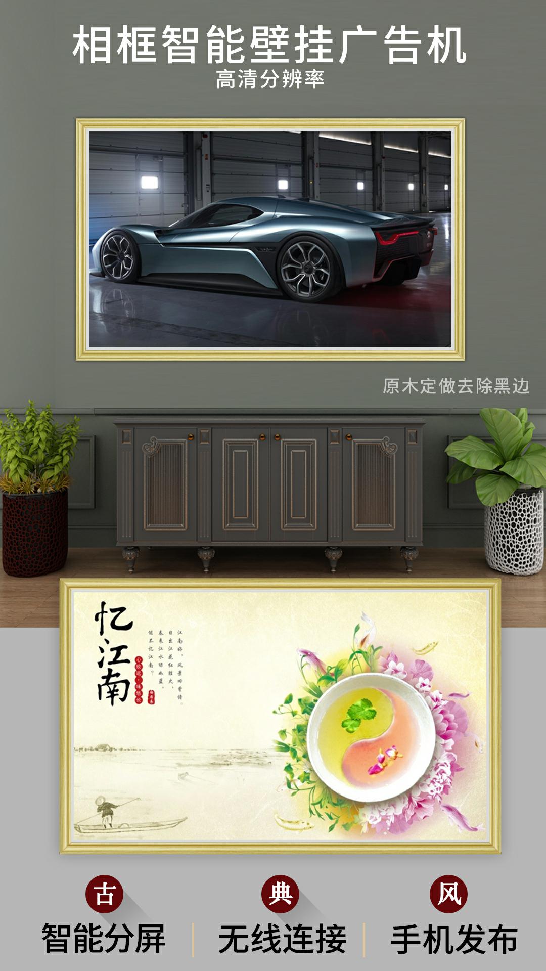 深圳博奧智能定制商場酒店場藝術館居家原木色畫框自動播放廣告機