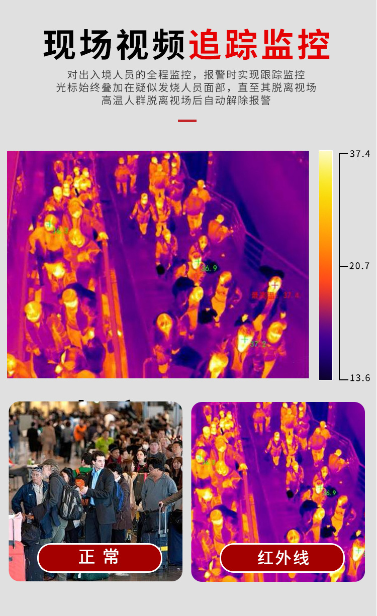 支持畫框測溫,根據人員進出通道不同分別設置測溫