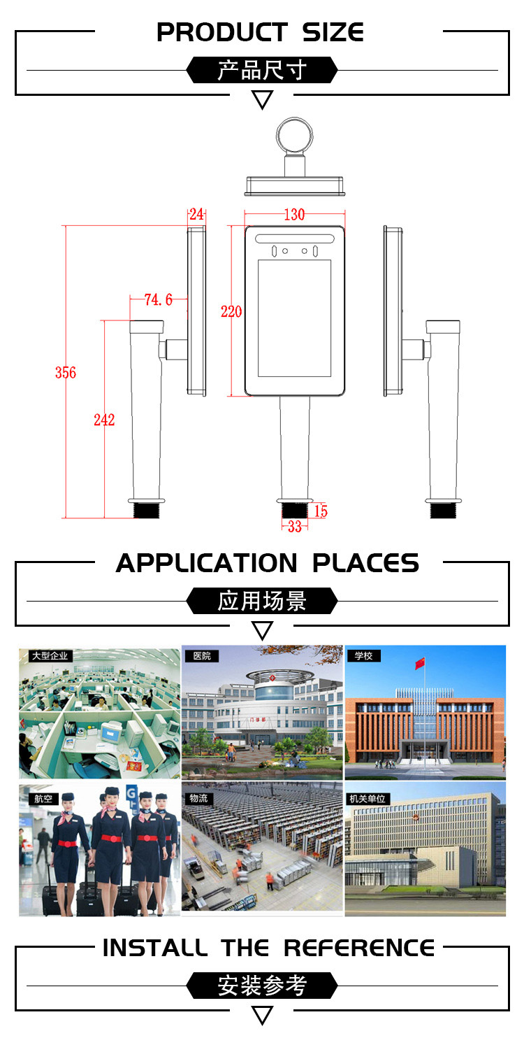 人行通道管理系統由人臉識別自動測溫一體機和閘機組成,主要應用在學校、小區、工廠、寫字樓等門口及大廳,對進出人員能夠自動快速識別測溫及自動報警功能;從而且代替了手持體溫槍進行測溫,因此保證保衛人員不被傳染,也提高了工作效率,使通道更加順暢,解決了排除而造成的交叉感染諸多問題;同時系統具有訪客登記門禁考勤等功能。