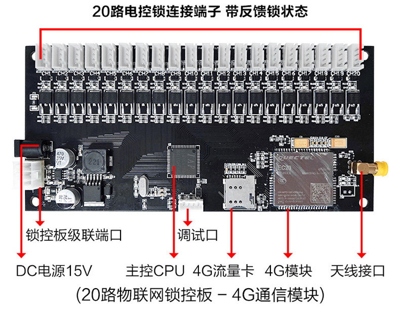 發定制快遞儲物柜軟件系統24路485通信控制板無屏掃碼20路4G無線鎖控板廠家直銷