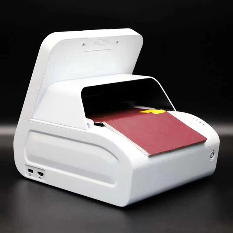 可對護照證件全版資料頁進行24位清晰彩色拍照,可見光(白光)、紅外光光源下采集的圖像可保存為BMPPNGJPEG等多種圖片格式,且照片不會含有反光造成的光斑;同時也可從帶芯片的證件中,保存電子頭像照片;