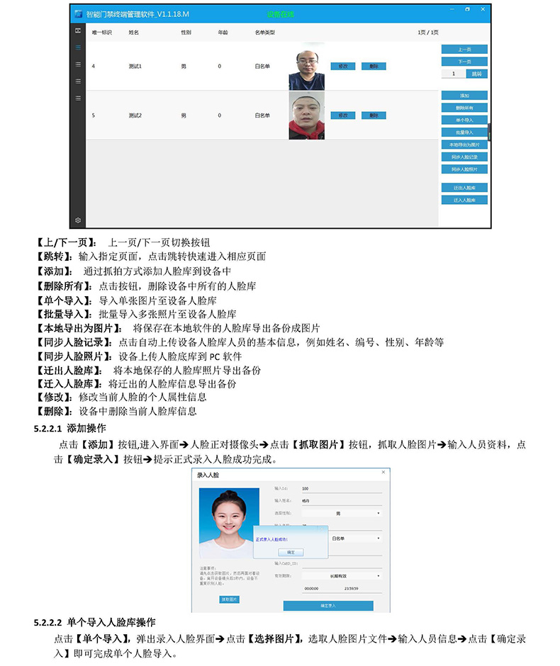 【人臉管理】:點擊進入人臉庫管理界面,可對人臉庫執行加、減、刪、查、改等操作。