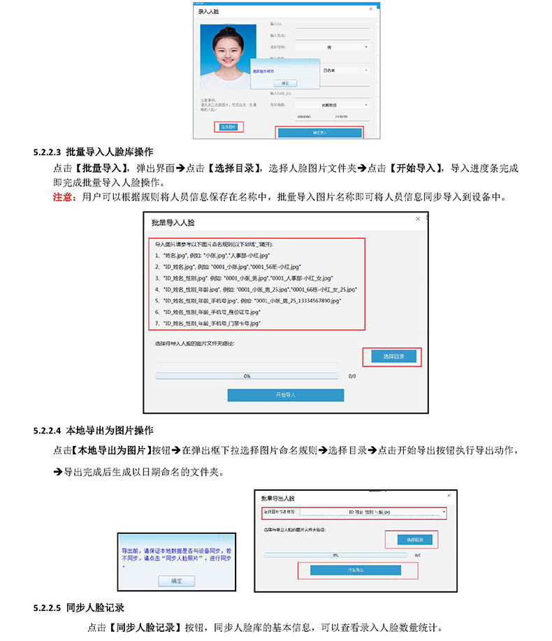 注意:用戶可以根據規則將人員信息保存在名稱中,批量導入圖片名稱即可將人員信息同步導入到設備中。