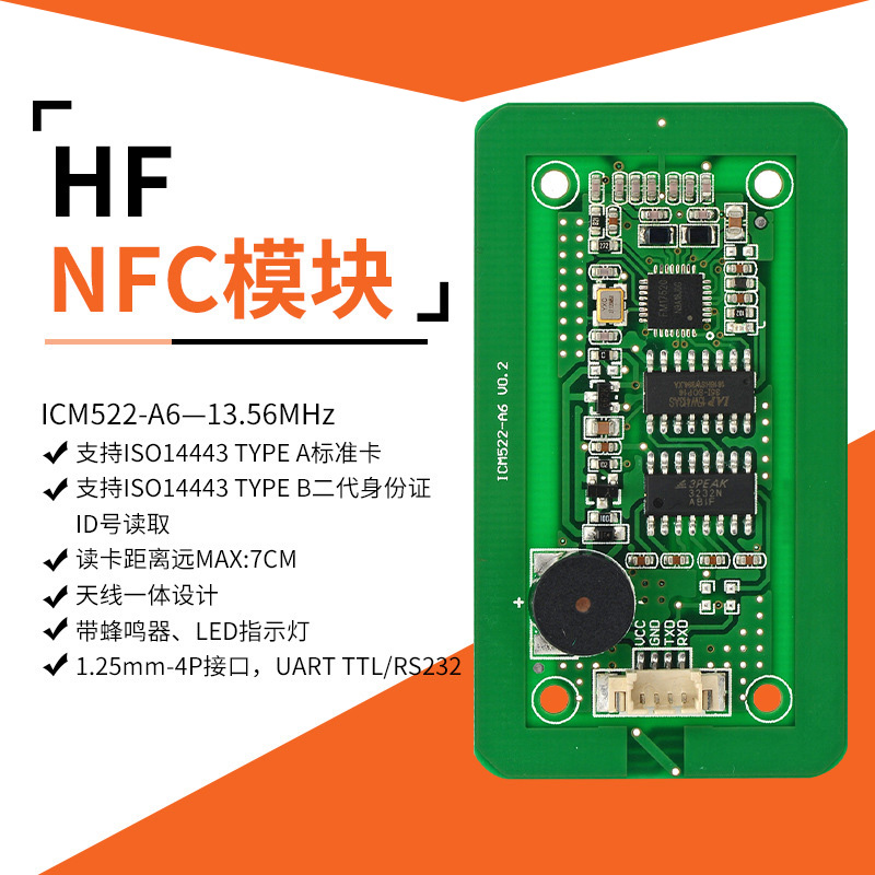 門禁嵌入式身份證原始物理ID號NFC讀卡器RFID高頻14443B控制板方案