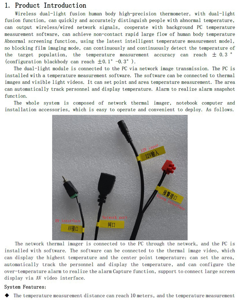 ?????? 整個系統有網絡熱像儀、筆記本電腦和安裝配件構成,操作簡單,部署便捷。如下所示。