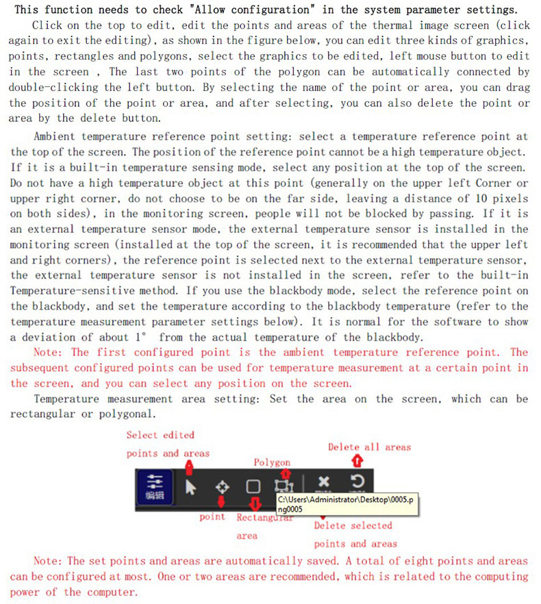 注:第一個配置的點是環境溫度參考點,后續配置的點可以用于畫面中某個點的測溫,可以選擇畫面的任意位置。