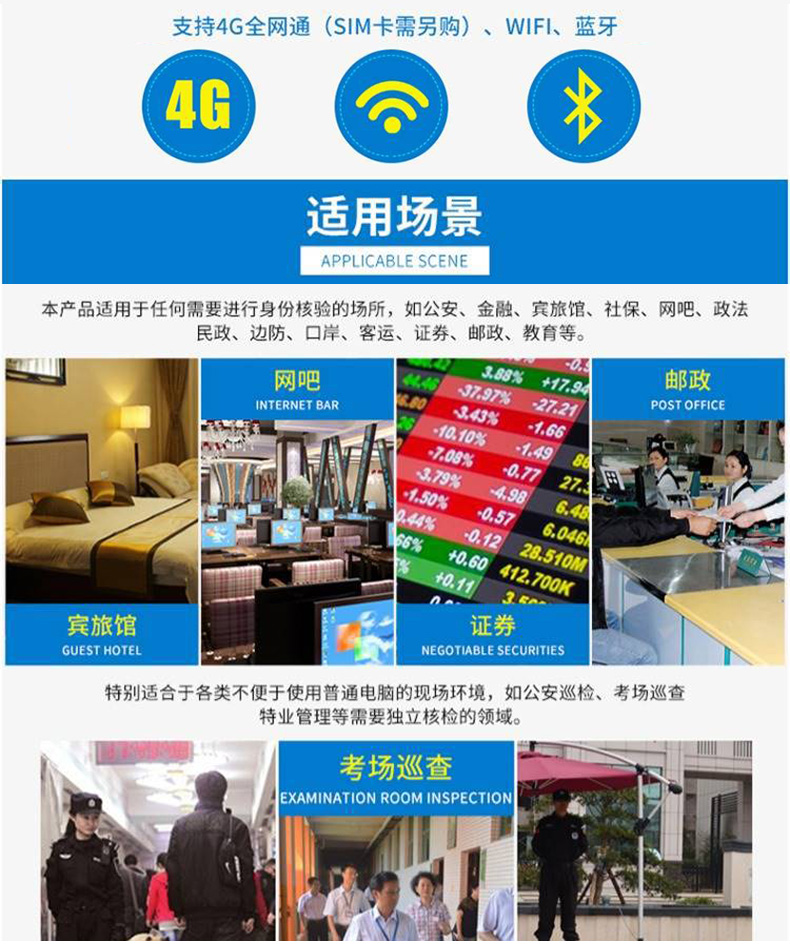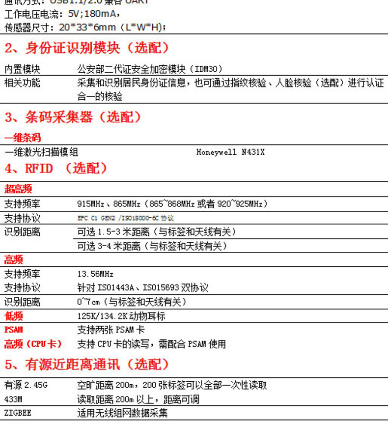 產品功能:身份證閱讀 人臉識別 指紋識別 條碼掃描 IC卡寫