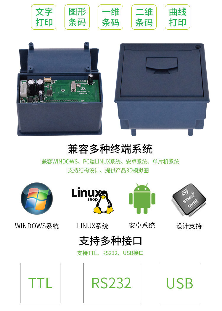 58MM面板嵌入式自助終端設(shè)備訪客系統(tǒng)取號點餐小票微型熱敏打印機定制開發(fā)