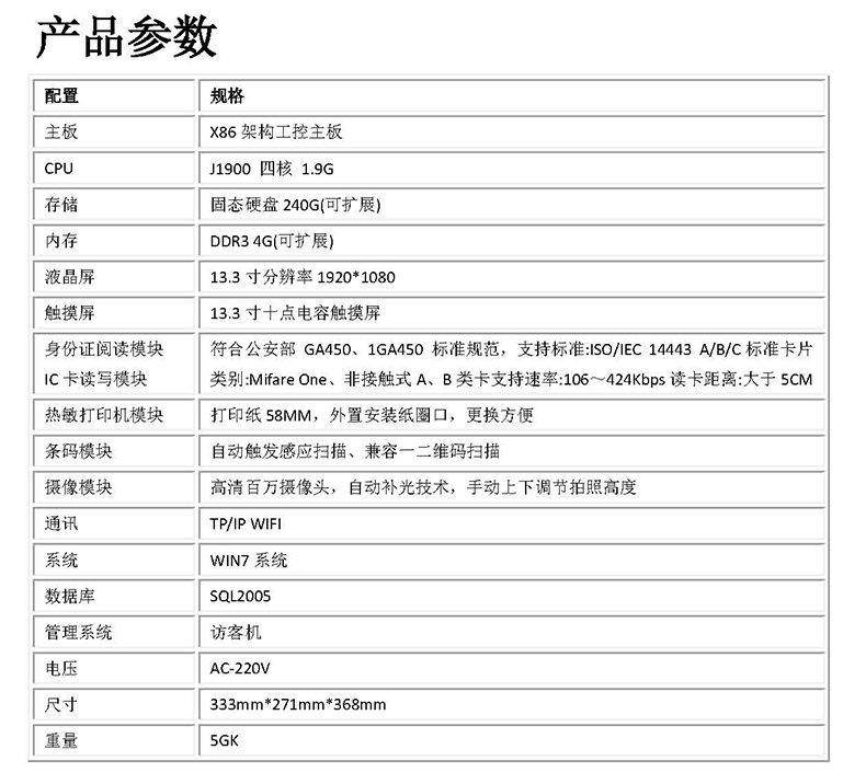 產(chǎn)品用途:來(lái)訪人員登記 人證核驗(yàn) 門衛(wèi)管理