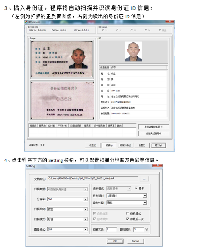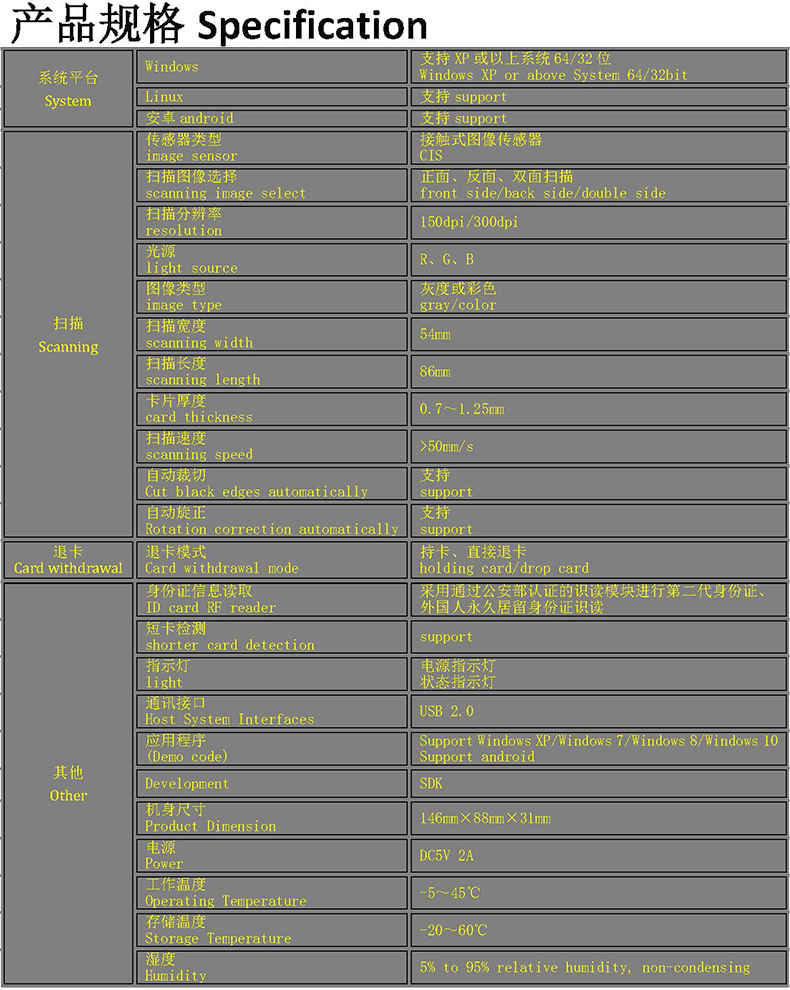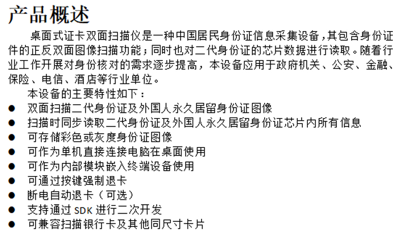 l  掃描時同步讀取二代身份證及外國人永久居留身份證芯片內所有信息