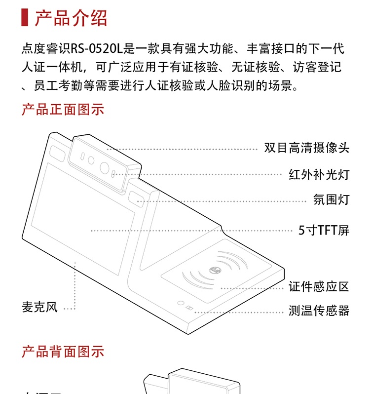 產(chǎn)品名稱:5寸人證比對(duì)測(cè)溫一體 產(chǎn)品型號(hào):RS-0520L