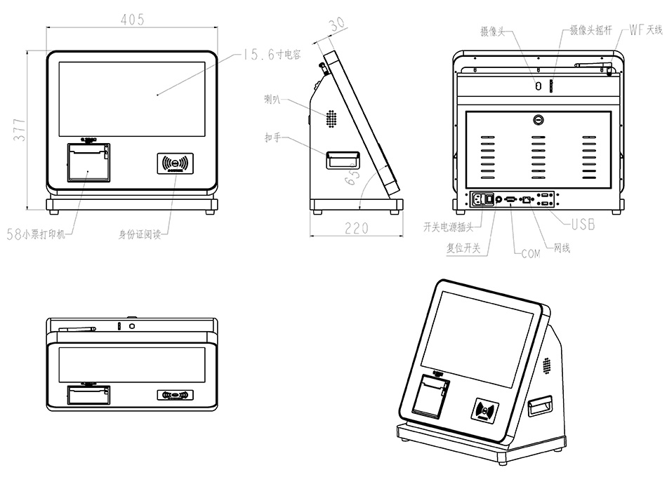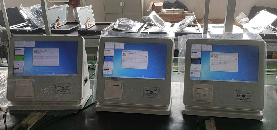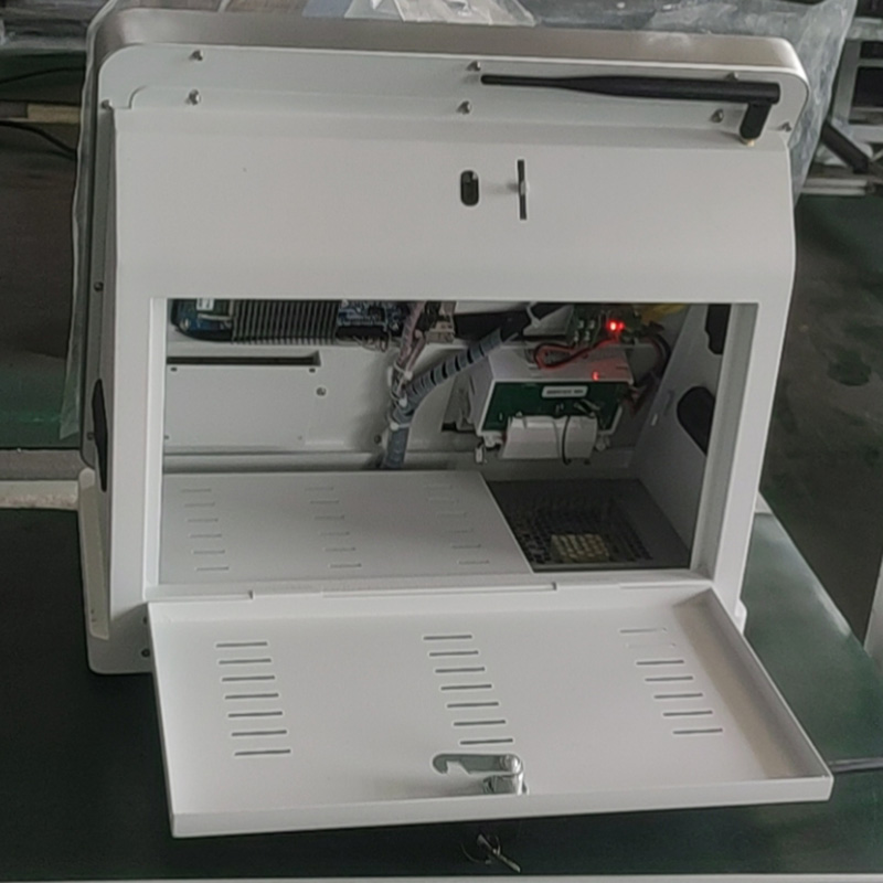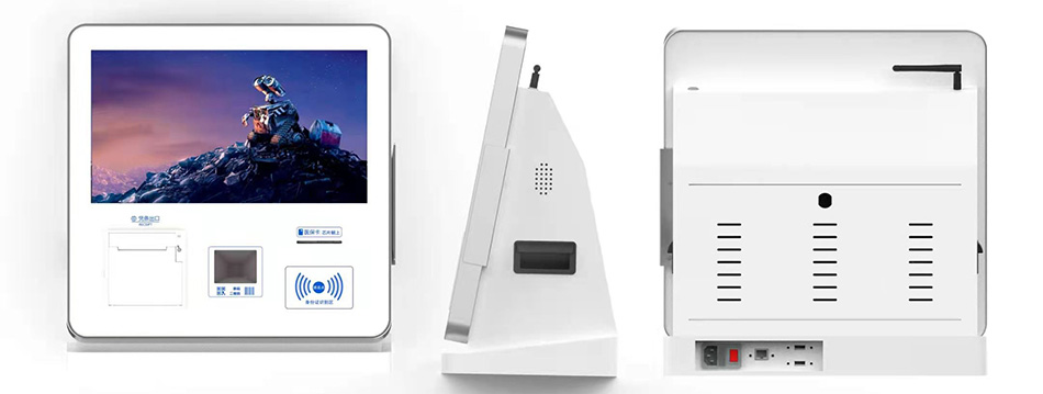 15.6寸臺式多功能一體機(jī)可應(yīng)用到學(xué)校、機(jī)關(guān)、企業(yè)、工廠、醫(yī)院等場所門衛(wèi)大廳做訪客登記系統(tǒng)、社保查詢終端,產(chǎn)品外殼采用鈑金,表面烤漆工藝,設(shè)備集成15.6觸顯一體屏,身份證閱讀器、IC卡讀寫器、熱敏打印機(jī)、條碼掃描儀、社保讀卡器、攝像頭等模塊;可安裝WIN系統(tǒng)和安卓系統(tǒng),從而方便了軟件系統(tǒng)集成商開發(fā)應(yīng)用,同時支持定制;包括外觀結(jié)構(gòu)功能定制。