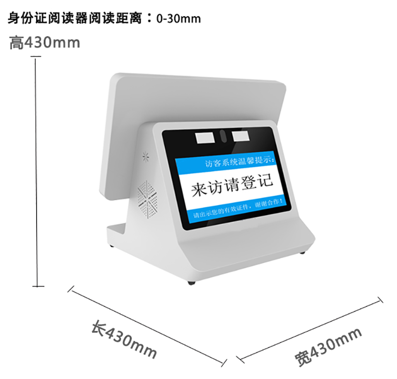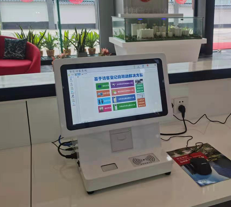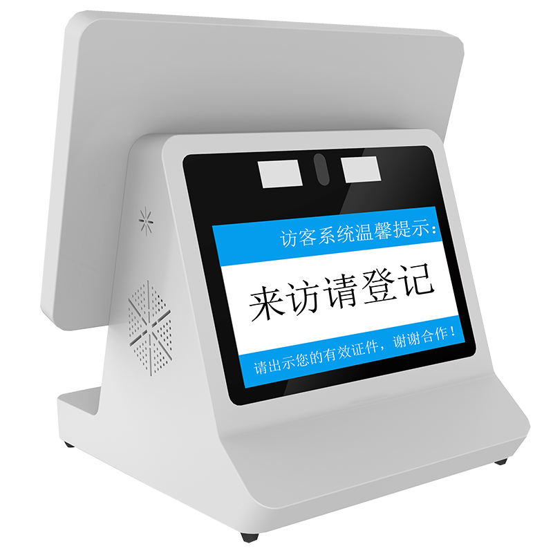 訪客機管理系主要針對來訪人員進行信息化登記,相比傳統手工登記提高了工作效率,同時快將訪客信息以電子化形式保存,方便日后查詢,訪客機采用鈑金烤漆工藝外殼,集成15.6寸觸摸一體屏和11.6寸顯示屏,身份證閱讀器、打印機、高清攝像頭、條碼掃描等模塊
