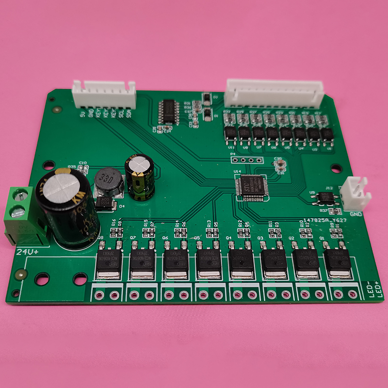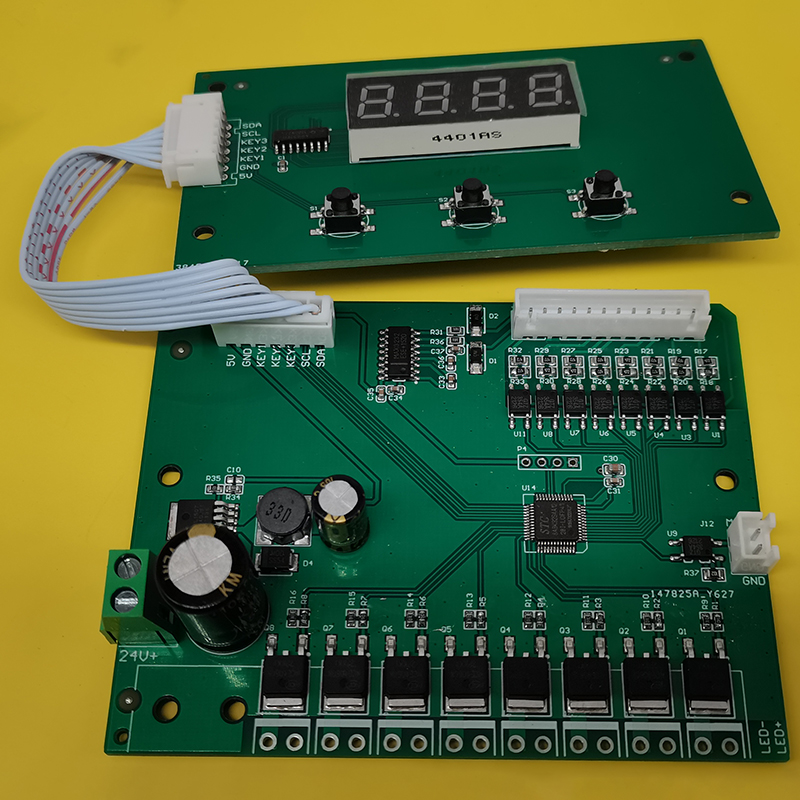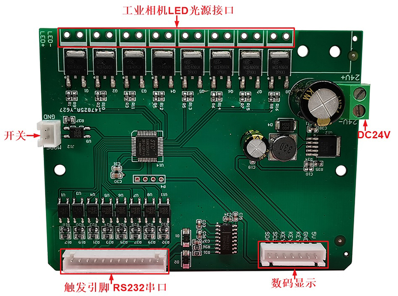 我公司開的光源控制板可控制8路光源LED燈,RS232串口控制,直流DC24V電源、同時根據市場需求我公司提供定制光源控制板PCBA方案及控制模塊。