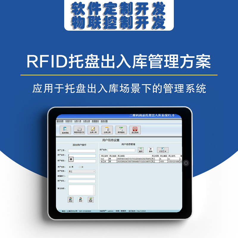 2)叉車師傅操作:改造叉車帶RFID讀寫器,叉起托盤的同時通過叉車作業平板操作,將托盤貨物相關信息寫入托盤標簽,并進行入庫操作。 監督人員操作:通過移動式的手持機將托盤貨物信息寫入托盤標簽,并進行入庫操作。