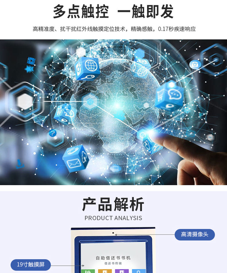 數字圖書閱覽自助借書智能觸摸一體機多功能自助終端應用系統開發