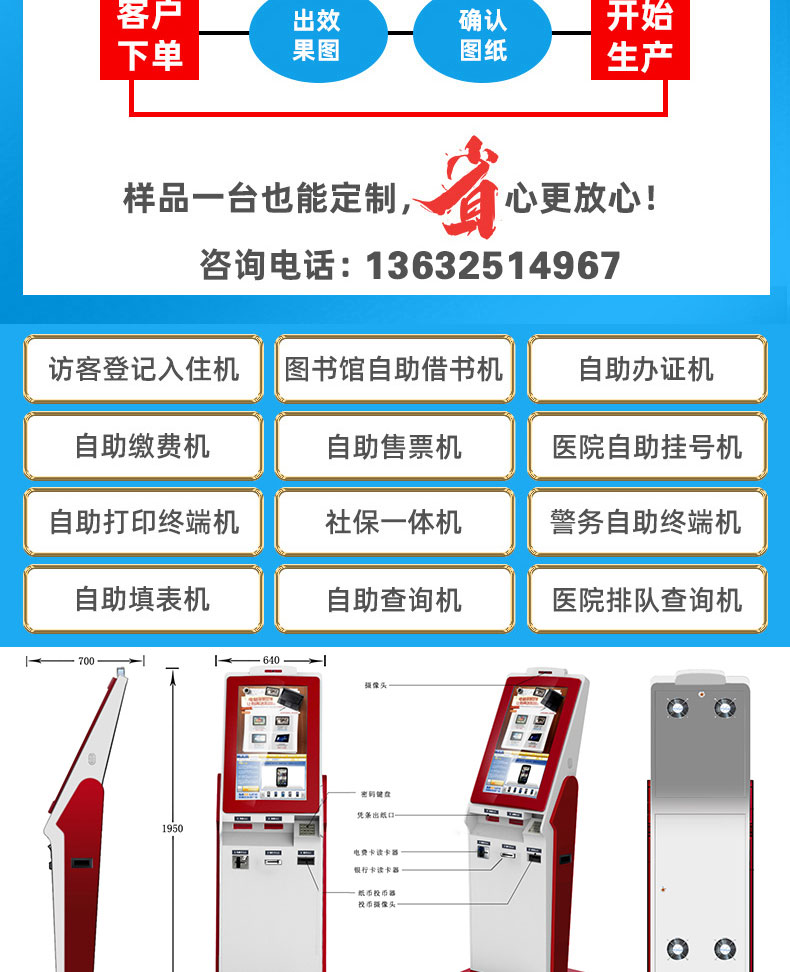 工商醫院大廳社保卡打印取單一體機智能自助終端應用系統開發