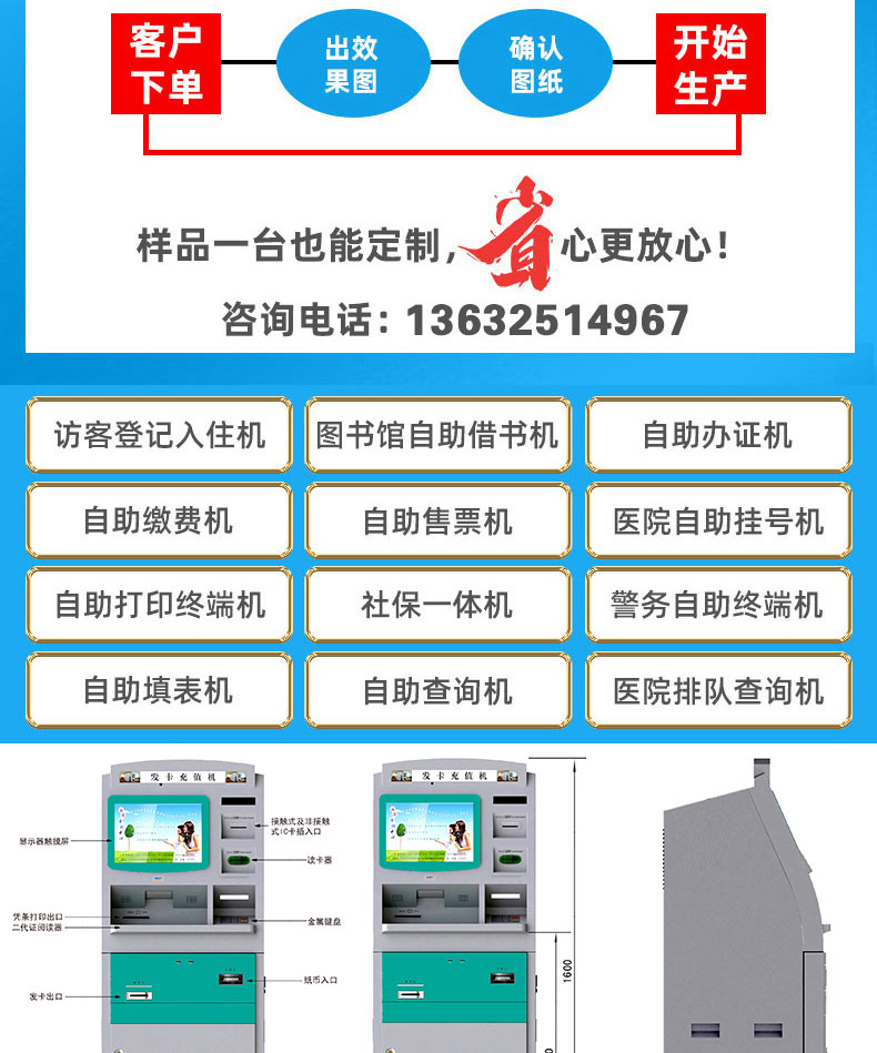 立式智能終端機醫院自助打印報告繳費觸摸查詢一體機系統軟件開發