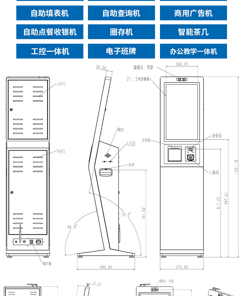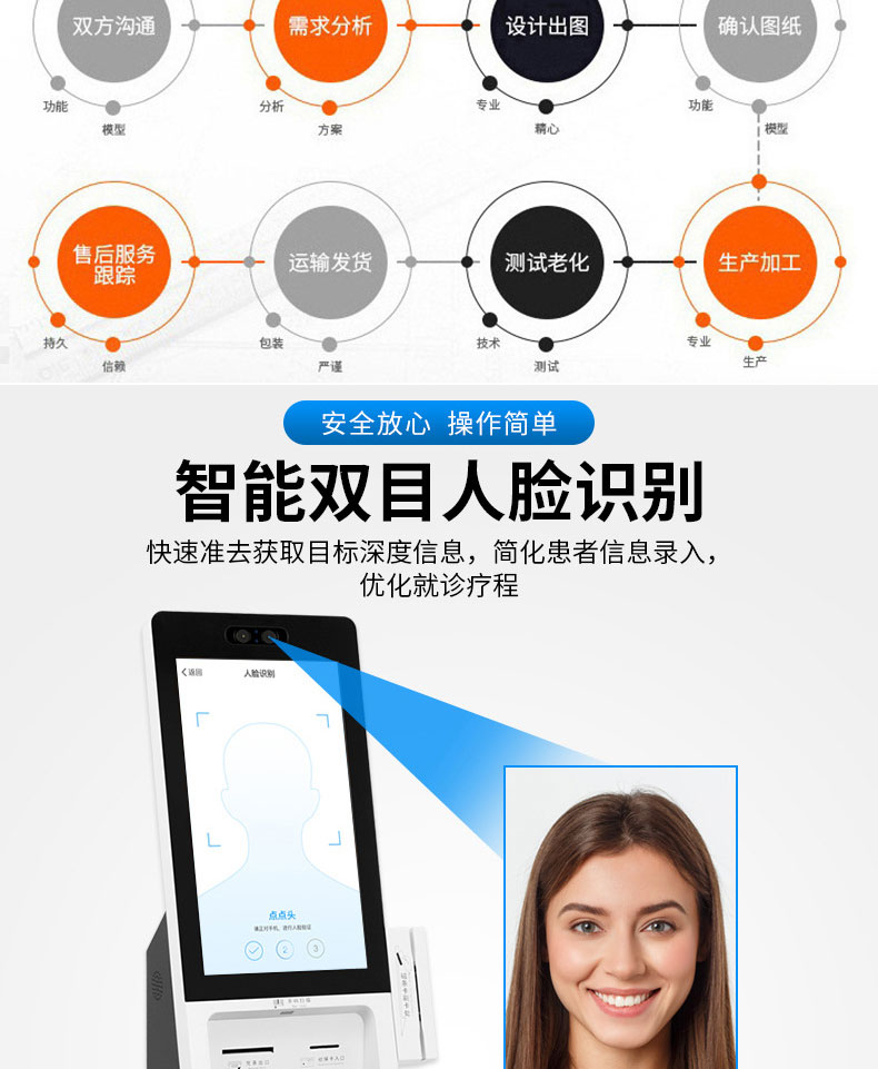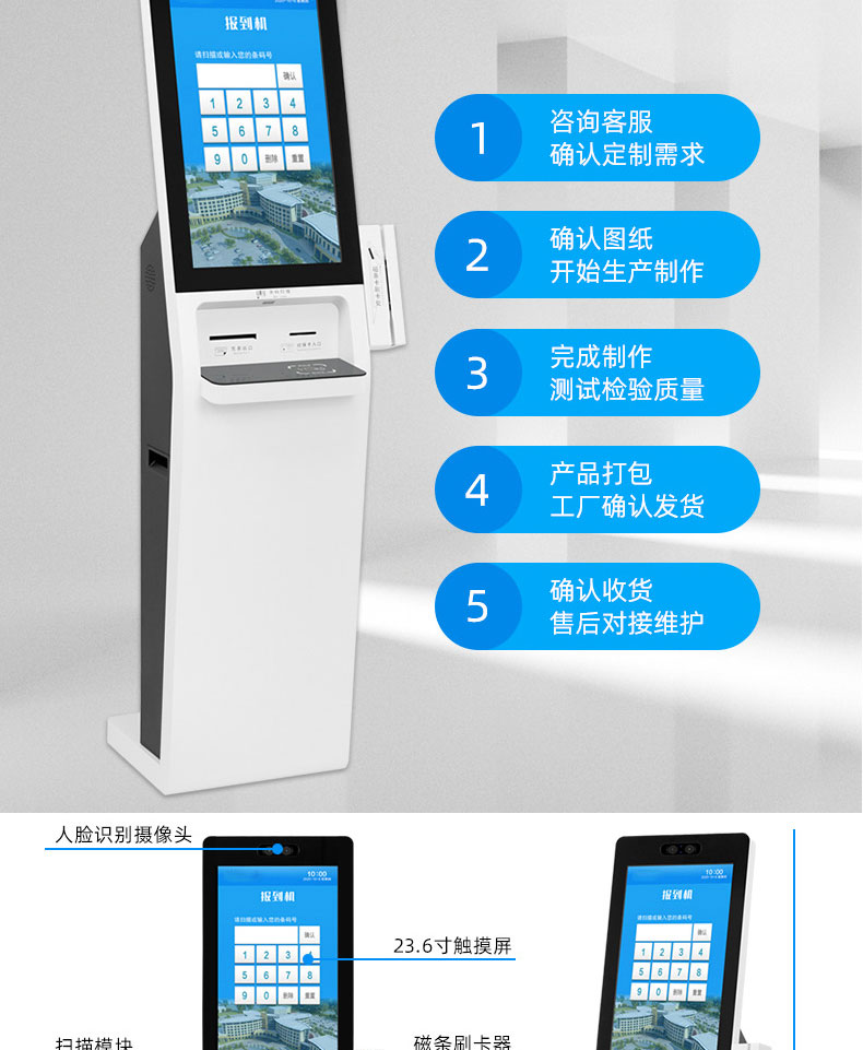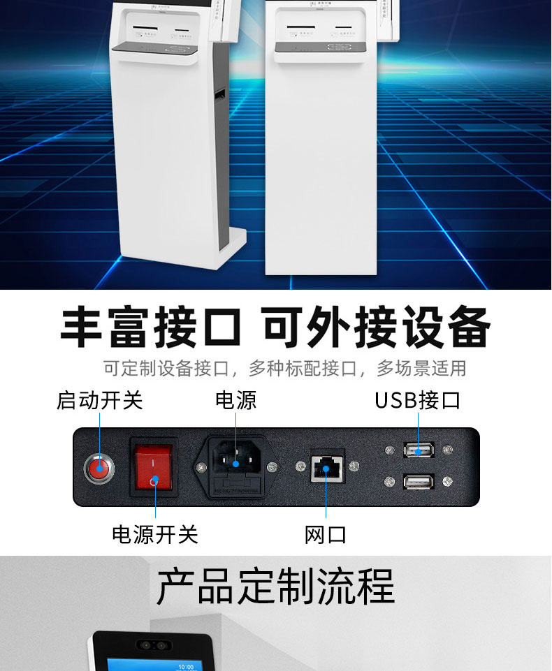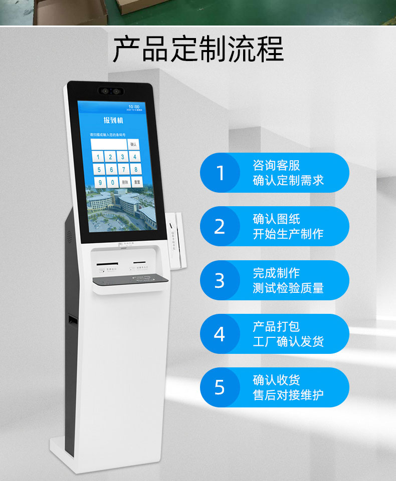 專業提供電腦觸控產品、自助服務終端的設計及生產服務,主要產品自助終端機、自助打印機、自助取票機、自助查詢機、自助繳費機、自助發卡機、自助政務一體機,產品使用于各個行業;醫院、學校、銀行、酒店、景區等。。。。。公司擁有專業的生產線,嚴格的質量把控。耐心的咨詢服務團隊及專業的技術負責團體。