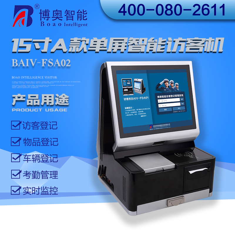 ? ? ? 15寸A款單屏智能訪客機主要用在政府機關(guān)、關(guān)口、機場、軍隊、公安、法院、學校、事業(yè)單位、花園小區(qū)、高檔寫字樓、工廠等門衛(wèi)傳達室用來訪客登記管理。