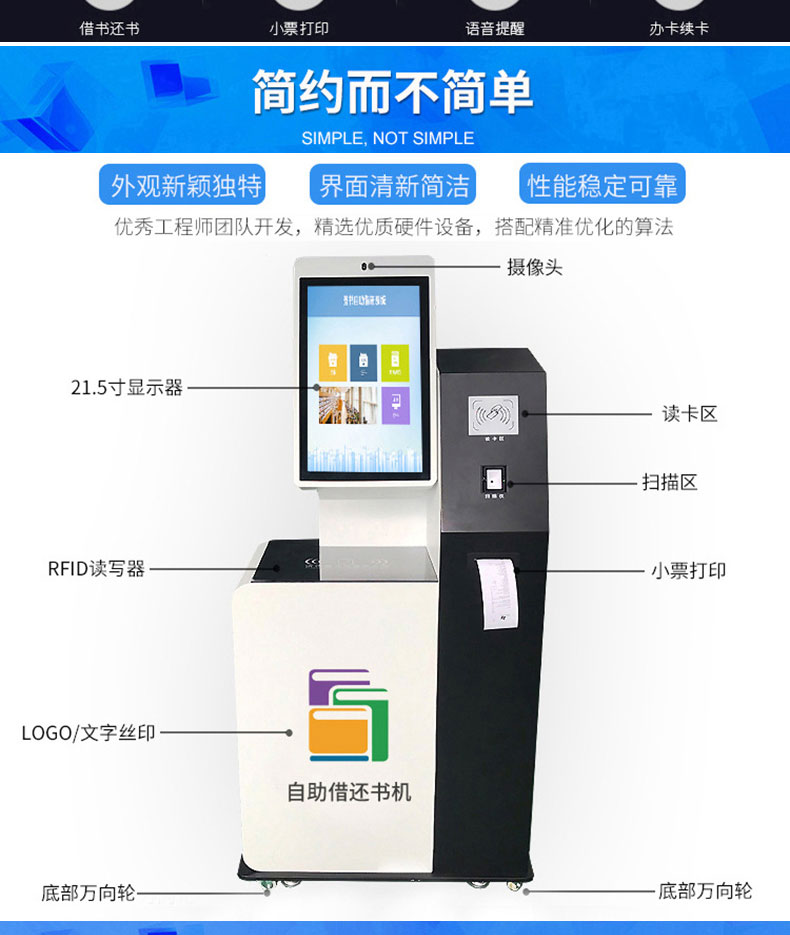立式觸摸一體機自動圖書借還閱覽借閱辦證打印人證比對智能終端系統(tǒng)軟件開發(fā)