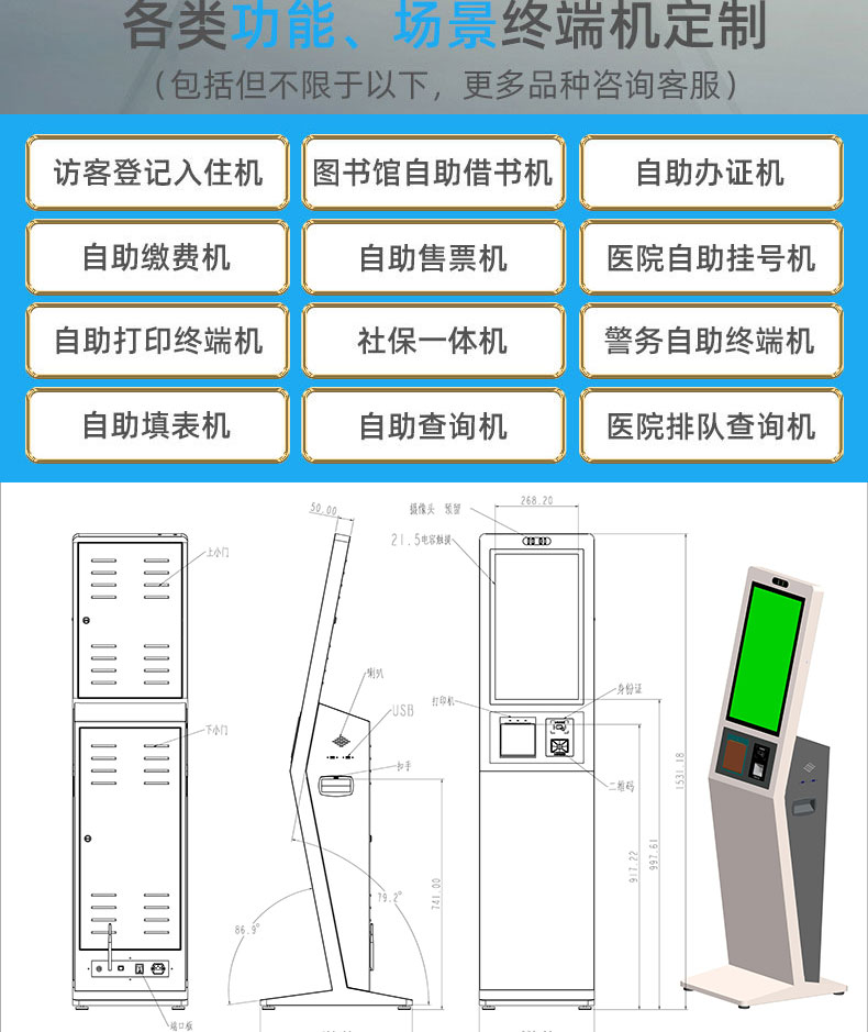 立式觸摸一體機訪客登記排隊叫號政務大廳醫療掛號繳費智能終端機系統軟件開發