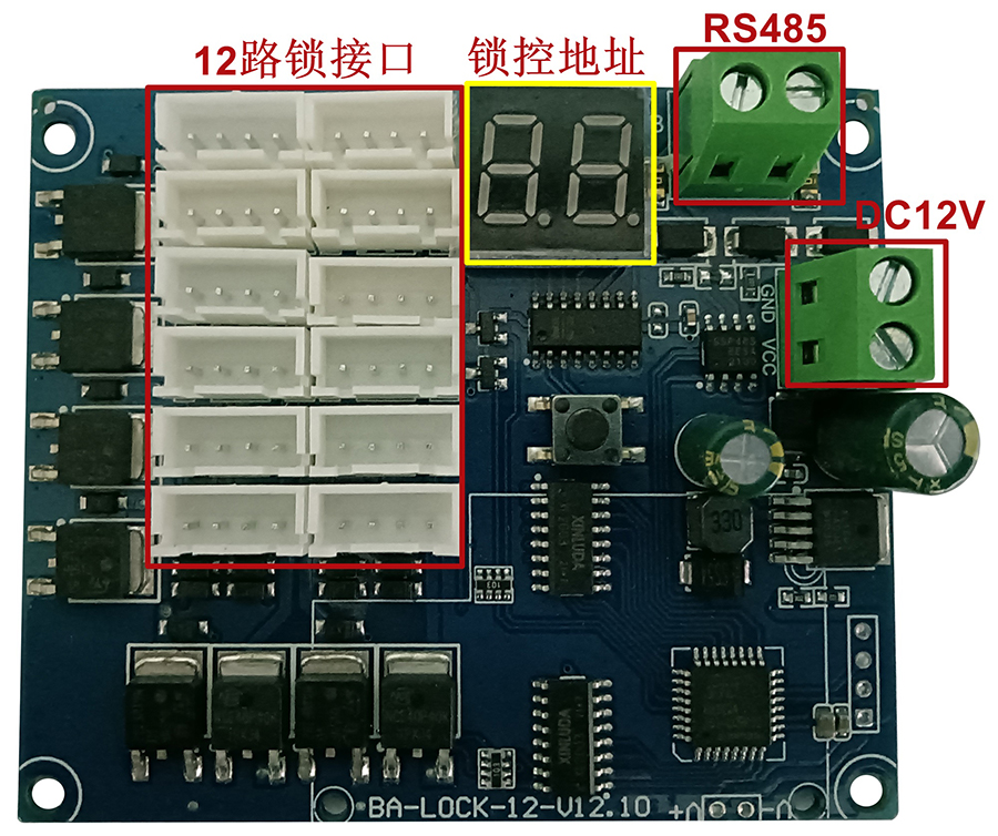 12路鎖控板是我公司專為電子柜開發的一款控制板,采用DC12V供電;管理系統軟件可以通過485通信控制12路電磁鎖,隨時反饋鎖狀態信號,支持一鍵全開功能和顯示鎖控地址。