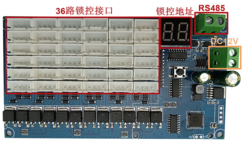 智能格子柜485通信36路鎖控板狀態信號反饋一鍵全開支持定制小程序軟件開發