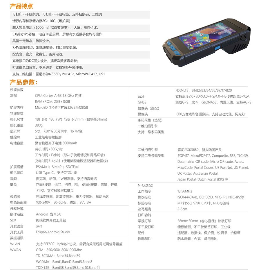 物聯工業智能便攜式手持一體機多功能PDA終端NFC不干膠標簽4G藍牙WIFI條碼支持定制