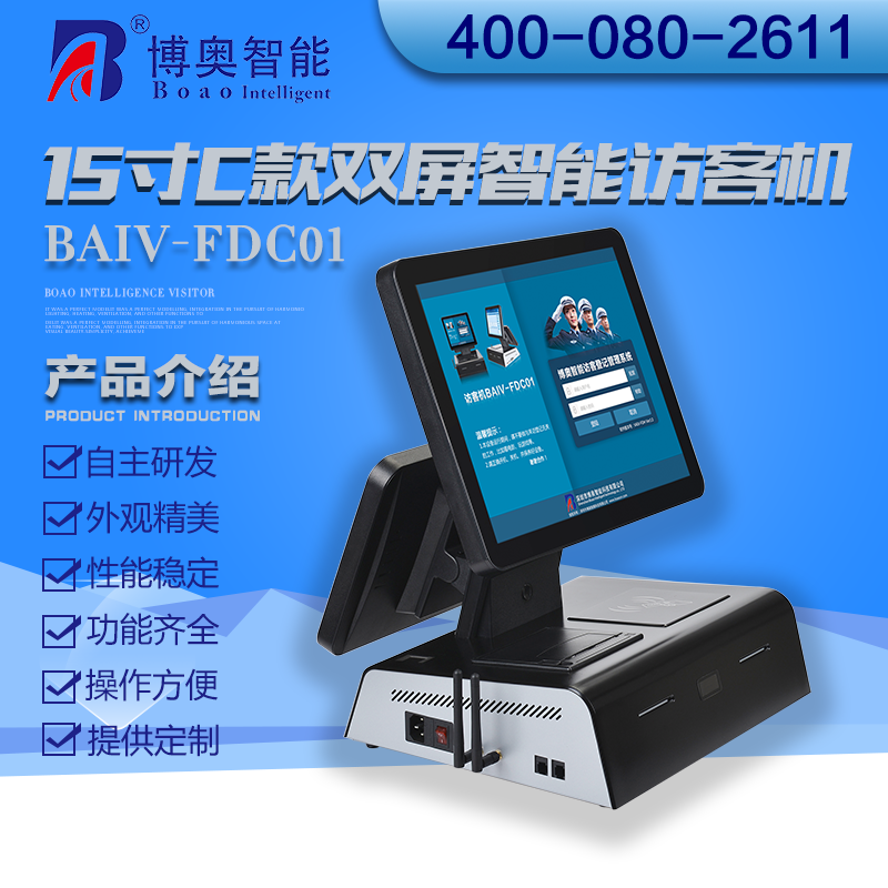 15寸C款雙屏智能訪客機 - 自助終端機|智能訪客機|軟件開發|電子硬件PCBA控制板開發|深圳市博奧智能科技有限公司 - 自助終端機|智能訪客機|軟件開發|電子硬件PCBA控制板開發|深圳市博奧智能科技有限公司