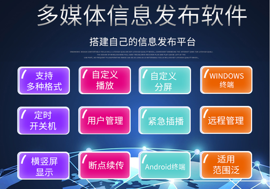 多媒體信息綜合系統(tǒng)是一種全新的媒體概念,指的是在醫(yī)院、銀行、大型商場 、超市、酒店、飯店、影院、街道、廣場、地鐵、火車、公交車站、醫(yī)院及其他公共 場所,通過終端顯示/互動(dòng)設(shè)備,發(fā)布商業(yè)、財(cái)經(jīng)和娛樂信息的多媒體專業(yè)視聽系統(tǒng)。其旨在特定的物理場所、特定的時(shí)間段對(duì)特定的人群進(jìn)行廣告信息播放的特性,融合了多媒體視頻信息的多樣性和生動(dòng)性,實(shí)現(xiàn)了信息發(fā)布的遠(yuǎn)程集中管理和內(nèi)容隨時(shí)更新,使受眾在第一時(shí)間接收到最新鮮的各類資訊。它將成為信息化建設(shè)的重要載體,不僅能夠提供及時(shí)、全面、優(yōu)質(zhì)、高效的信息服務(wù)以及全新的文化氛圍,還能夠極大地提升環(huán)境的整體形象,也是現(xiàn)代建筑的必然趨勢(shì)。