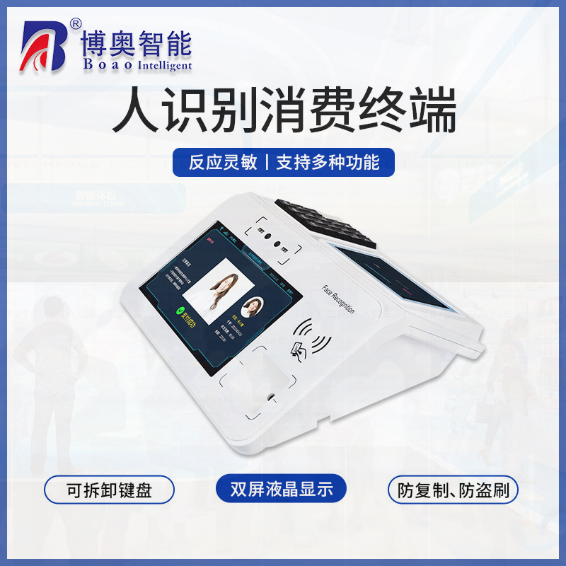 近些年,我司跟緊時代發展,充分了解市場需求后,決定在原有消費機基礎上研發改進新一代消費機,經過技術工程師的日夜攻克以及充分的實驗驗證,全新的非接觸式IC卡的消費機擴展人臉識別消費機正式面世。人臉智能+食堂消費系統有效的解決了傳統的飯票或者飯卡丟失、補辦的繁瑣步驟,刷臉支付更為智能、廣泛、方便。而且人臉智能+食堂消費更能凸顯作為機關單位與時代接軌的先進性、高效性人臉識別消費管理系統是當前廣泛使用的收費、食堂售飯系統。它采用了雙目結構光,雙目200萬寬動態模組、雙目活體檢測人臉系統,并結合現代管理方法設計而成。具有免接觸,無損耗,技術先進,系統擴張性好,無需維護,投資一步到位等優點,避免了因接觸IC卡的讀寫、油污、芯片裸露等缺陷造成的各種故障。是取代磁卡,無接觸式人臉的收費機,是廣大學校,企事業單位提高管理水平,實現電腦化的優先選擇。
