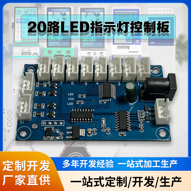 在醫療領域,20路LED指示燈控制板可以應用于醫療設備指示、病房管理等。通過控制LED燈的亮滅、閃爍,可以實時顯示醫療設備的工作狀態,提高病房的管理效率。