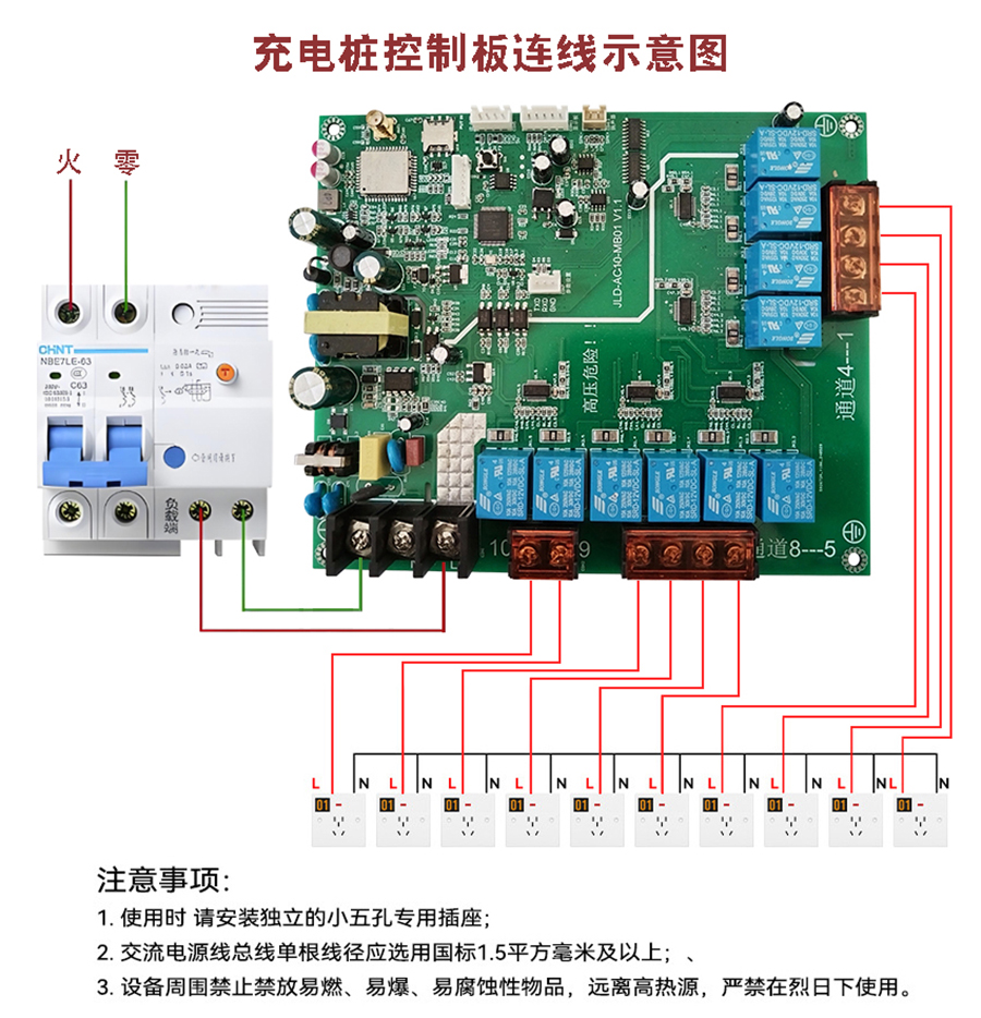 • 備注:詳細接線步驟請參考附帶的《10路共享充電樁接線圖V1.1》。
