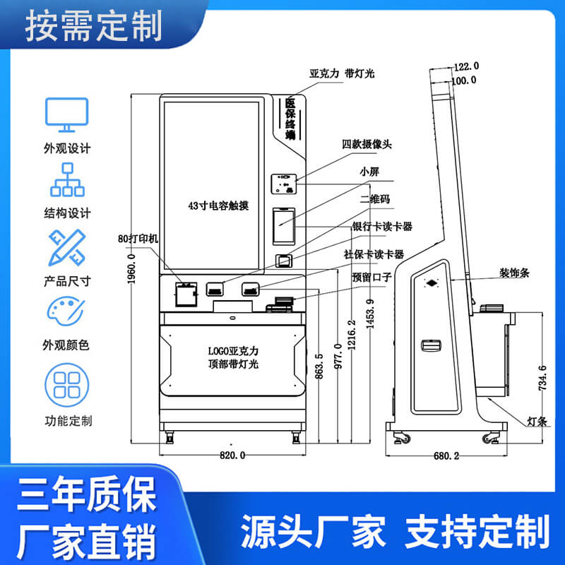 43 寸醫保自助終端機設備組件、功能簡介及工業產品外觀結構功能定制服務